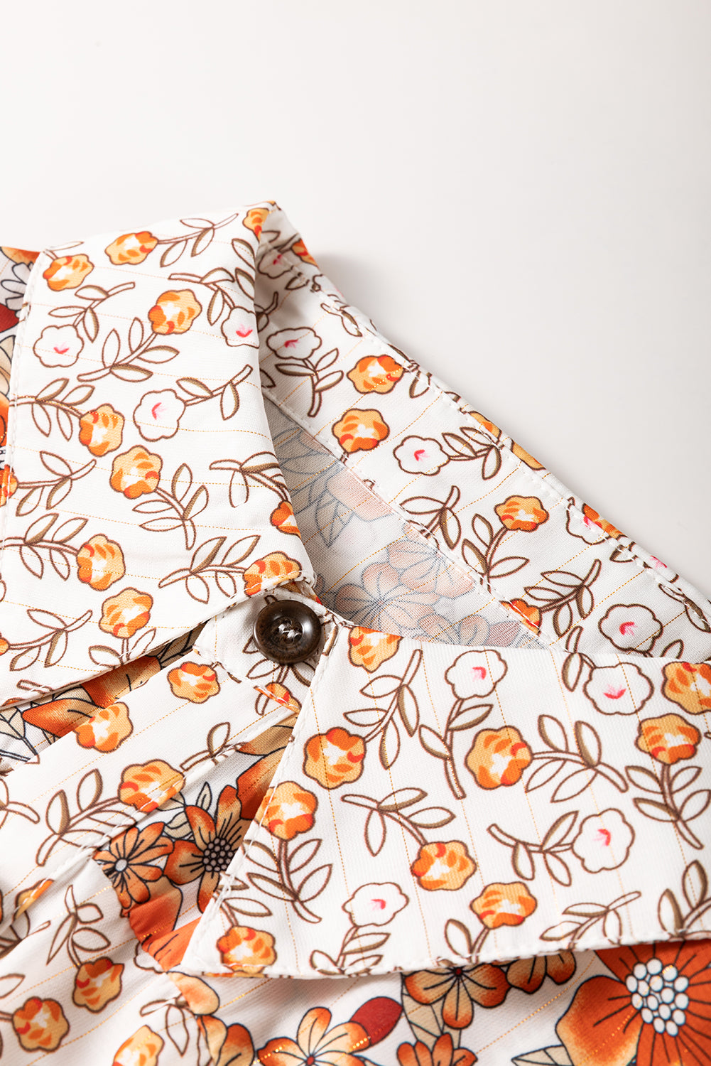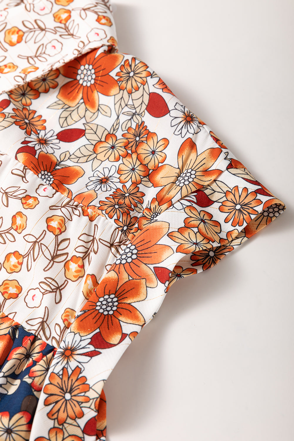 Beige Plus Size Floral Patchwork Button Front Collared Mini Dress