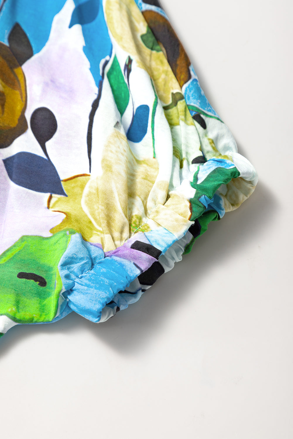 Light Blue Floral Print Slit V Neck Short Sleeve Blouse