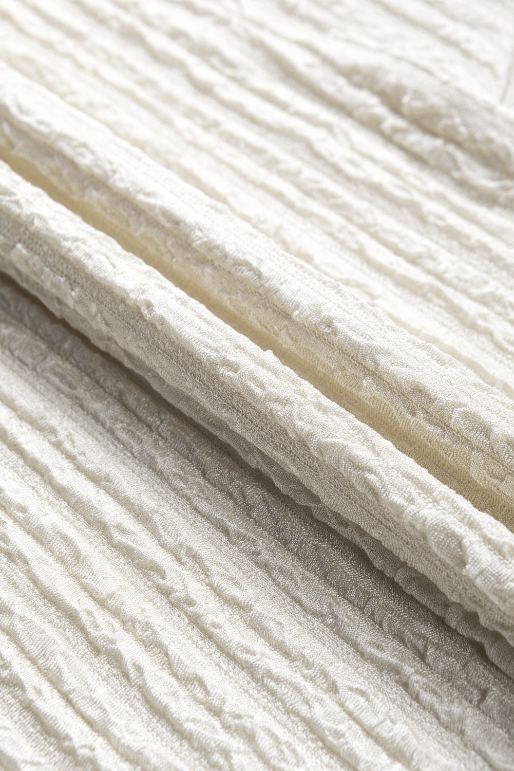 Pale Khaki Textured Wide Sleeve V Neck T Shirt