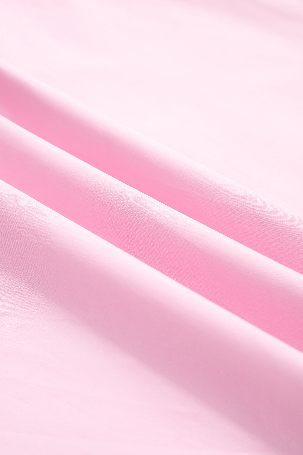 Pink Contrast Striped V Neck Collision Short Puff Sleeve Blouse