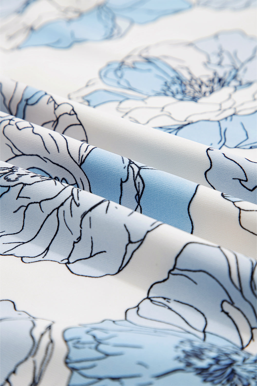 Sky Blue Floral Print Tie Neck Long Sleeve Flowy Mini Dress