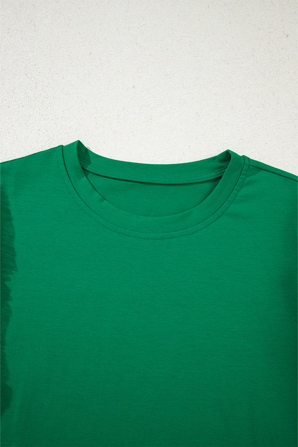 - It features a round neck, short sleeves, and loose cut