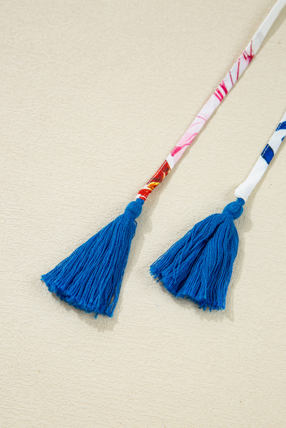 White Floral Print Tassel Tie Bracelet Sleeve Flowy Blouse