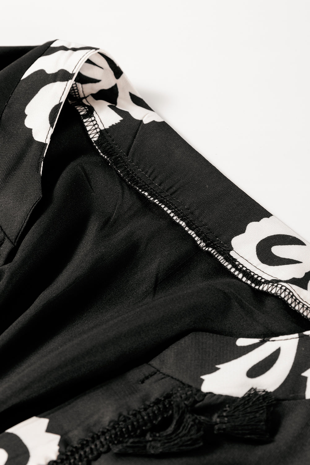 Black Plus Size Western Floral Print Fringed V Neck Dress