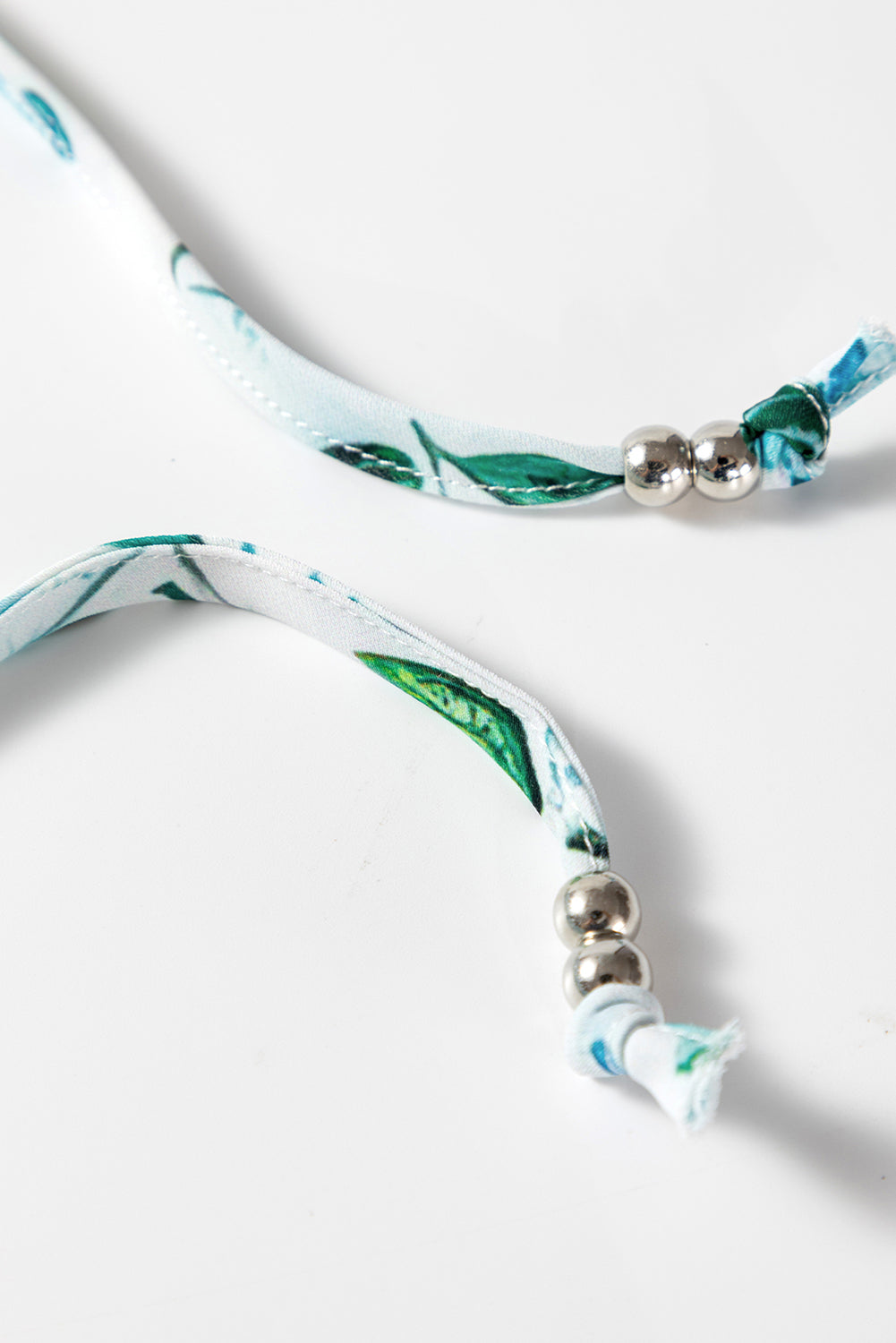 Sky Blue Floral Print Frilled Trim Tie Neck Elastic Cuffs Long Sleeve Blouse